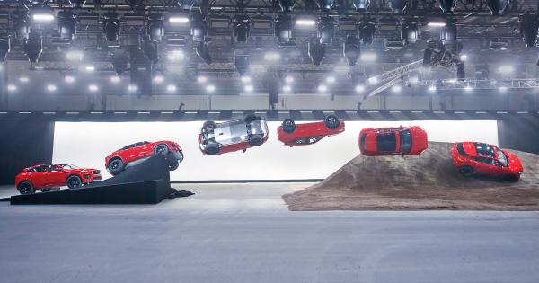 No new Jaguar Land Rover launch is complete without a show. The new Jaguar E-Pace set a tremendous record by performing a corkscrew jump, amazingly covering 15.3 metres and 270 degrees of rotation. The compact SUV jumped into the record books for the ‘Furthest barrel roll in a production vehicle’. (As seen in picture above) Check out the video.